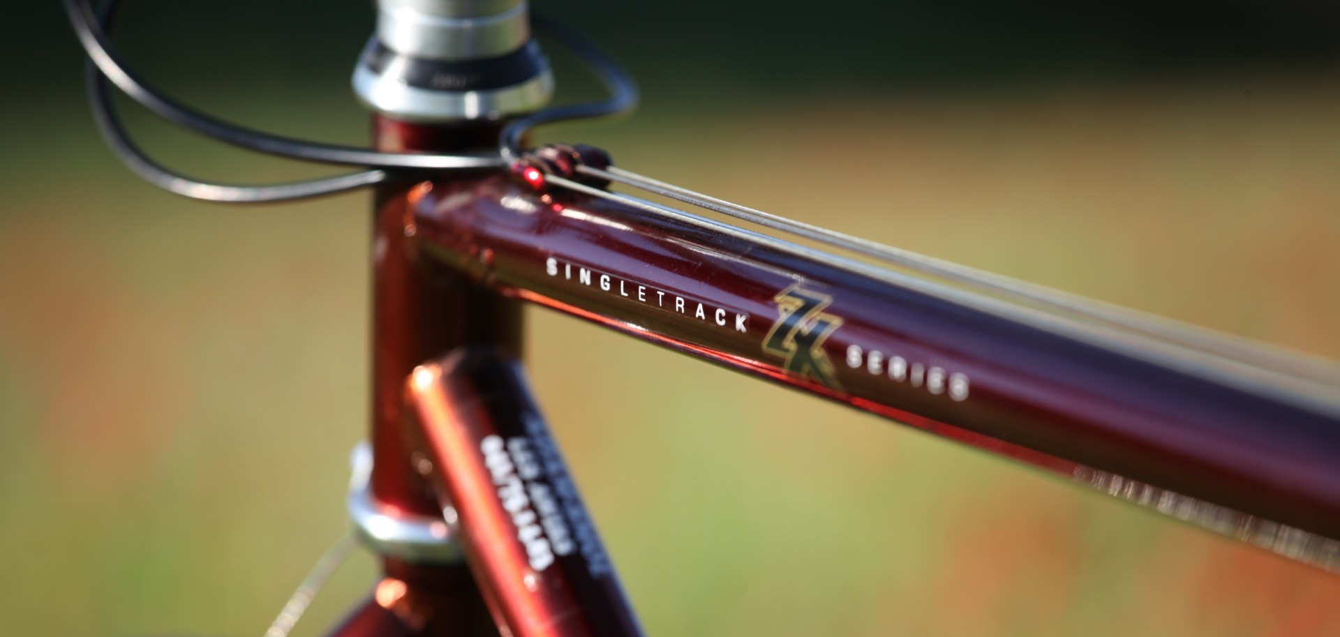J'ai donc embarqué l'épave et, une fois l'objet mis à nu, appliqué plusieurs couches d'acide phosphorique sur les zones les plus touchées (sous le cadre essentiellement). Et bien sûr dégrippé et nettoyé tout ce qui devait l'être. Au final, ce Trek 970, l'un des derniers produits sur le sol américain, a retrouvé une allure plus pimpante. Équipé d'un groupe Shimano Deore XT cannibalisé sur un MBK de moindre intérêt - avec pédalier ovale Biopace s'il vous plait - chaussé de pneus Schwalbe bi-tons et agrémenté d'une selle BLB Mosquito en cuir, ce joli Singletrack est de nouveau prêt à sillonner les petits chemins autour de Brignoles, avec Lucie à son guidon.